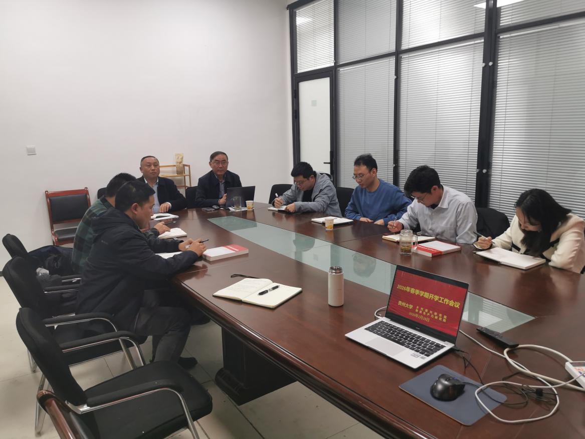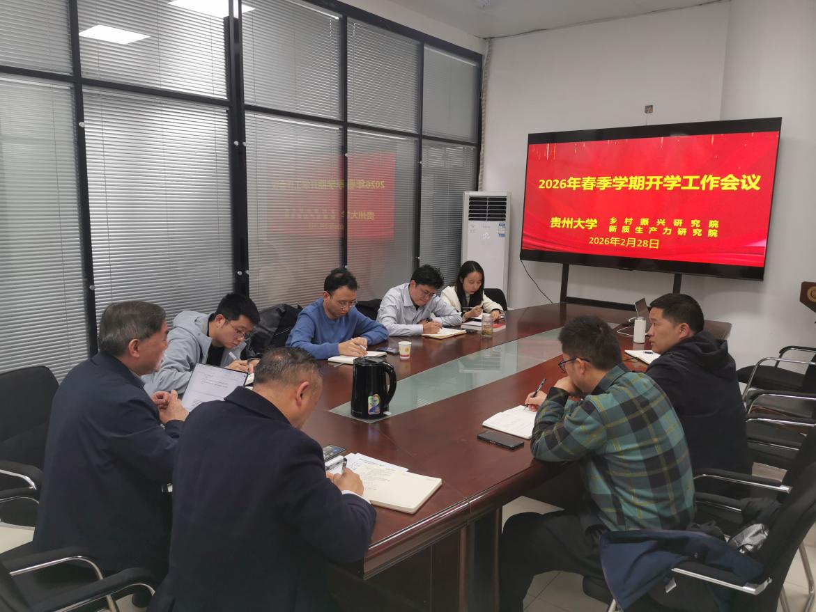 2026年2月28日,贵州大学乡村振兴研究院(新质生产力研究院)在研究院121-3会议室召开2026年春季学期开学工作会议,全面部署新学期各项工作。院长李锦宏主持会议,全体教职工参加会议。